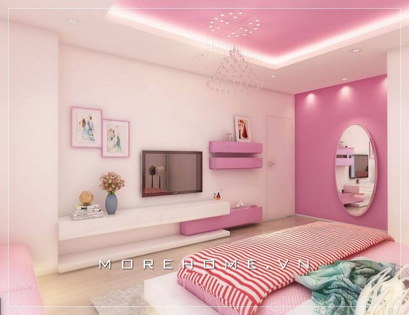 Gương trang trí là điểm nhấn ấn tượng, khiến cho không gian thêm phần đẹp mắt