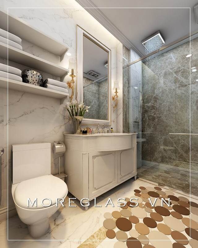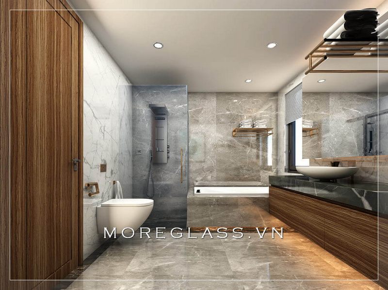 Sử dụng vách tắm kính cường lực để tạo ra một không gian phòng tắm hiện đại, độc đáo và đẳng cấp, giữa phòng tắm và phòng ngủ để tạo ra sự cách ly, sang trọng và tinh tế trong từng chi tiết.