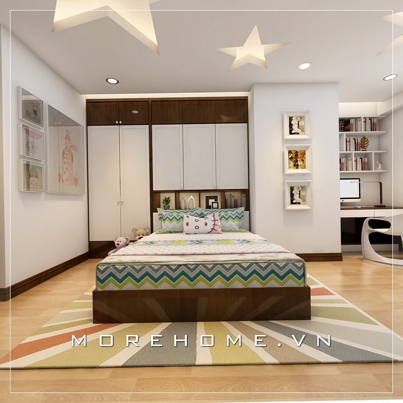 Mẫu giường ngủ gỗ công nghiệp có vẻ đẹp trẻ trung và hiện đại sẽ làm nên một phòng ngủ hoàn hảo cho bé.