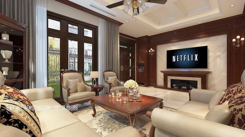Tạo nên một không gian ấm cúng và thân thiện trong phòng khách biệt thựu bằng cách trang bị đầy đủ những nội thất tiện nghi khi khách đến thăm nhà.